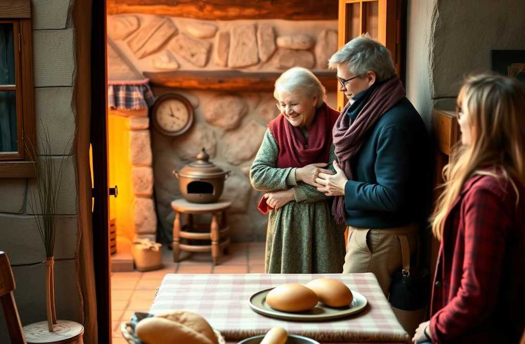 Её звали Агафья Степановна. Лет за восемьдесят. Под платком — седые волосы, лицо в морщинах, но глаза… светлые, добрые, живые. От неё пахло свежим хлебом и мятой. Пригласила нас присесть, а потом сказала: «Заходите, чайку попьём».