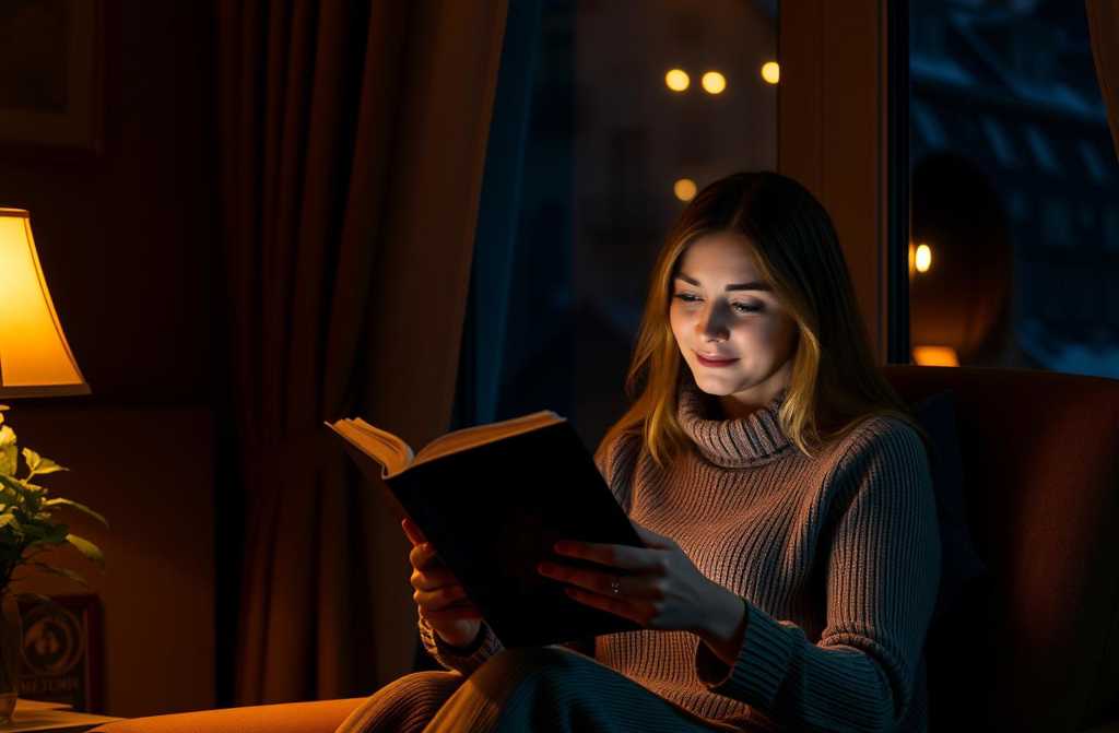 Алина убрала посуду, вернулась, включила лампу и снова взяла книгу.