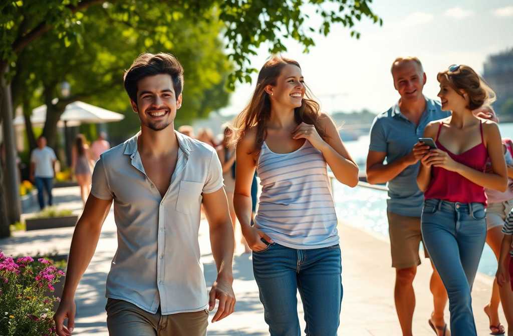 Идти всем вместе по набережной не получалось — то мамы с колясками, то велосипедисты неслись на бешеной скорости. Иван со Светой оказались впереди, а вскоре подруги и вовсе исчезли, оставив их одних.
