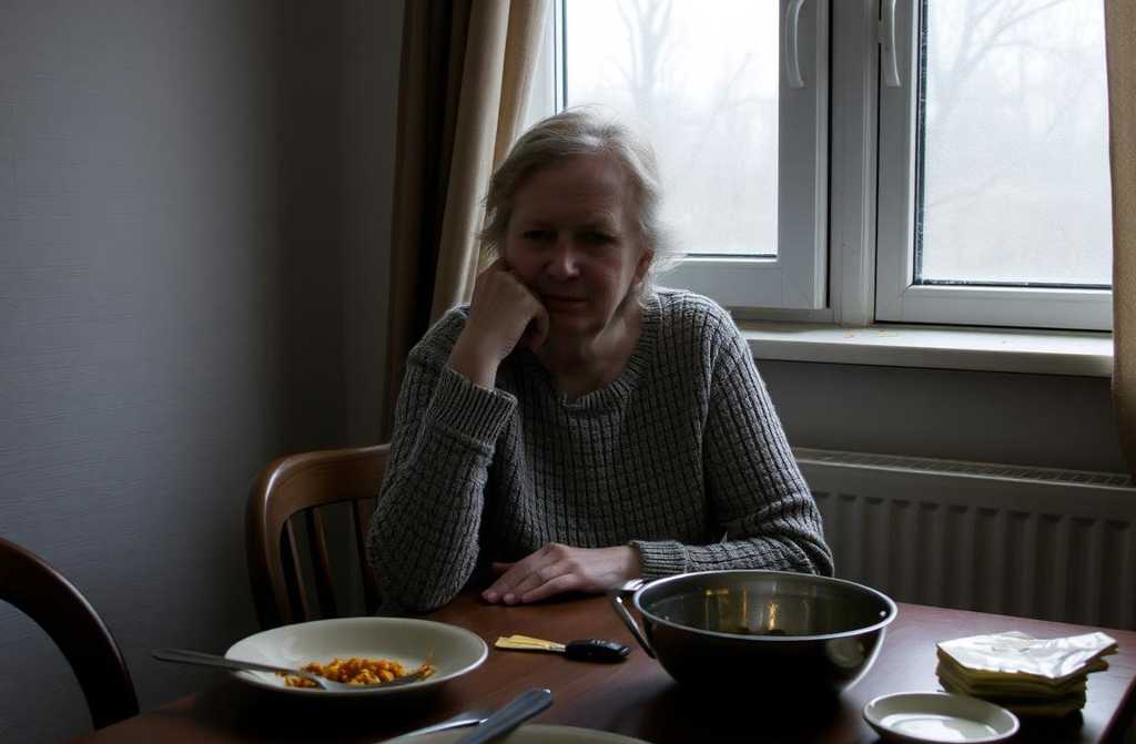 “Help yourself,” she replied flatly, setting a plate on the table.