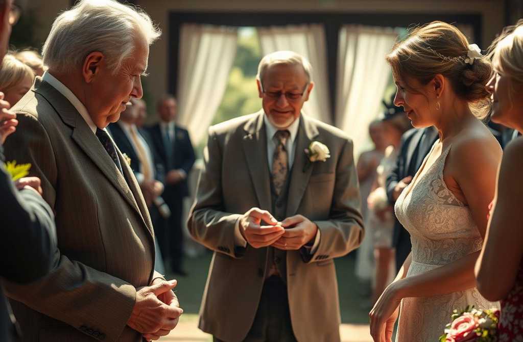 “IIm here for the wedding,” the man murmured, his voice like dry leaves. “My daughters getting married today.” His lips twitched into a fragile smile.