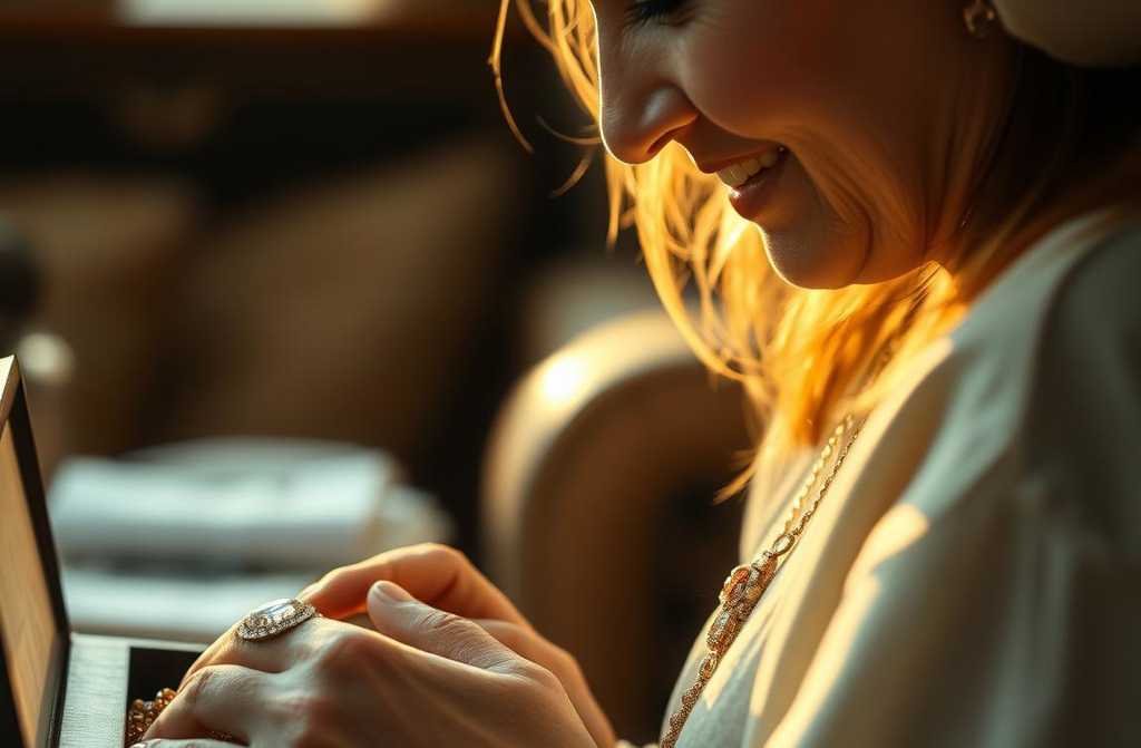 Emily traced her fingers along the velvet lining of the antique mahogany jewellery box, the diamonds glinting in the morning light. A tightness gripped her chest as she rememberedher grandmother had given her these pieces a month before passing. A ring with a central solitaire, delicate earrings, and a pendant on a slender chain.