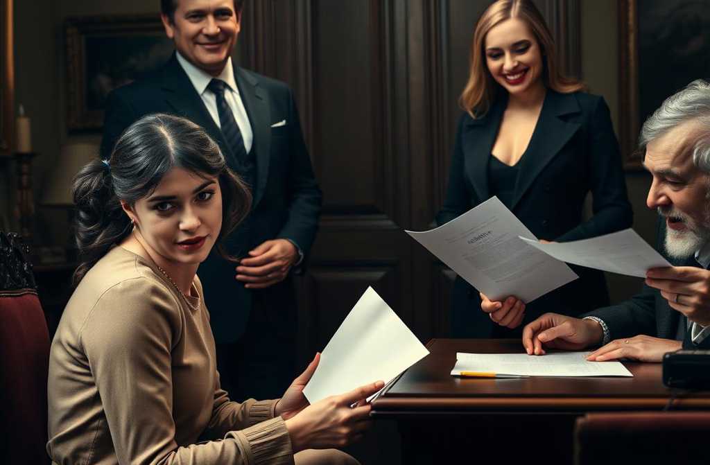 and all assets, including the estate, lands, and savings, pass to Thomas Whitmore, he declared, oblivious to Penelopes barely stifled giggle. Her crimson lips curled in triumph, eyes gleaming like hot coals. Emily felt something inside her snap.