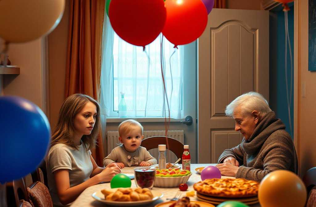 Ethan barged in, spotting Emma and Sophie at the birthday table. Balloons everywhere.