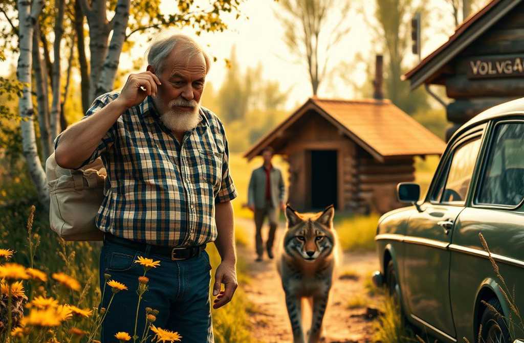 At last, they arrived. Oliver spotted two timber cabinsone large, one small. From the open door of the smaller one, hearing the Rovers engine, emerged… a lynx!
