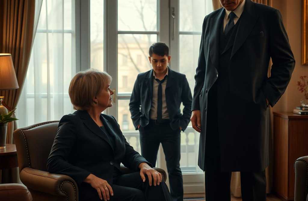 There he stood on the doorstep, with a tall man in a sharp overcoat behind him. The stranger carried an expensive leather briefcase and studied me with a calm, assessing gazethe kind reserved for objects youre either buying or throwing away.
