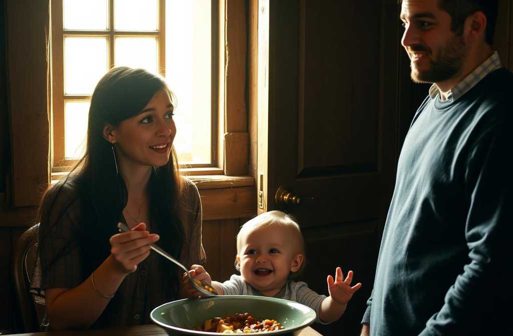 Olive barely slept. At dawn, she fed Oliver, who fussed over his porridge.