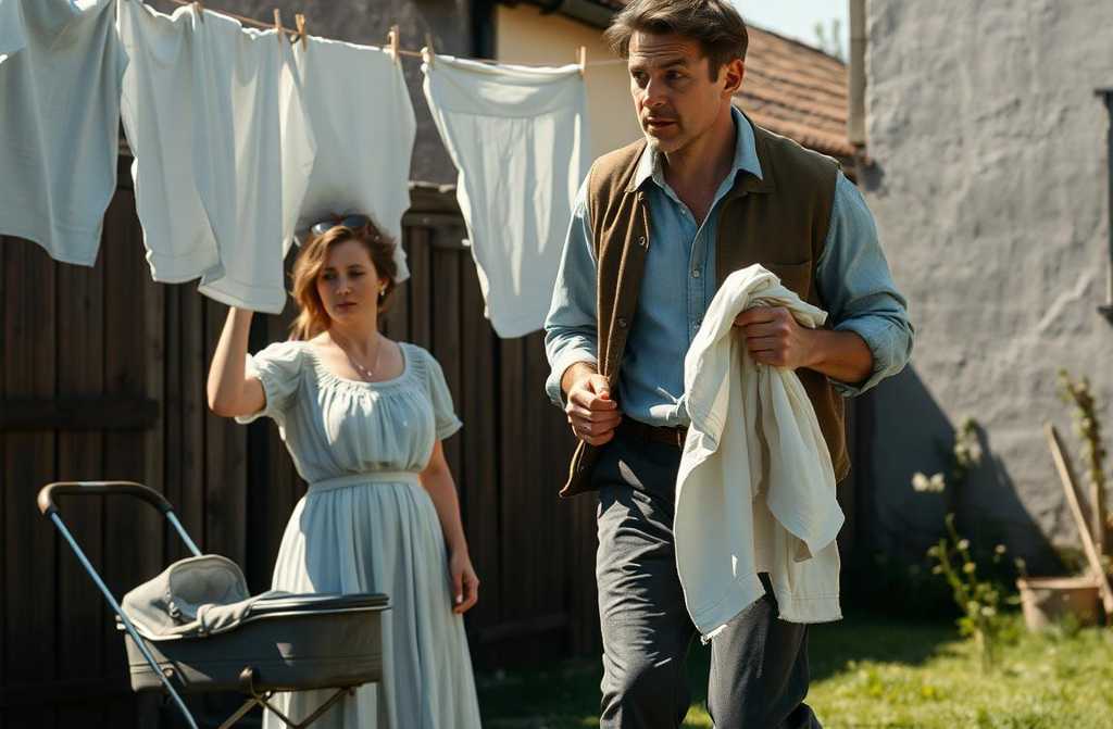 Tom sped to the countryside, where Marianne was hanging laundry. A blue-eyed baby sat in a pram nearbyhis spitting image.
