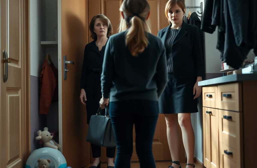 The woman blinked, bewildered, her eyes darting to the toys scattered across the floor, the laundry drying in the kitchenas if searching for proof that this was her home.