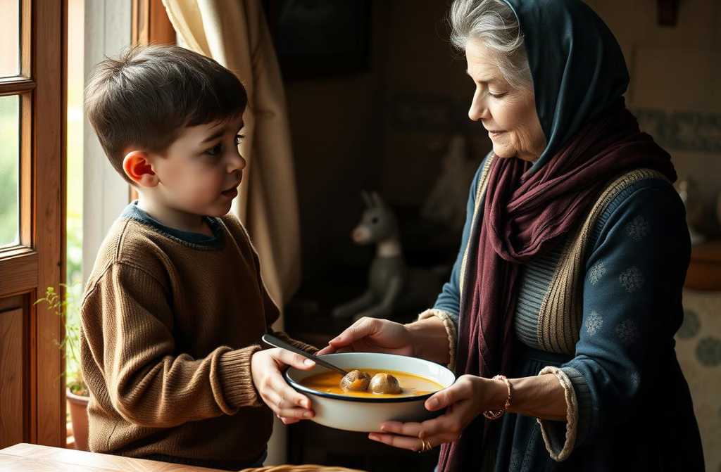 I wiped his face and asked, “Fancy some vegetable soup?”