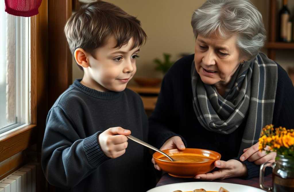 I wiped his face and asked, “Would you like some vegetable soup?”