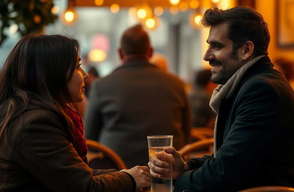 He was waiting outside. Looked just like his picture. The café was quiet. They took a window table. Coffee for him; she passed on cake.