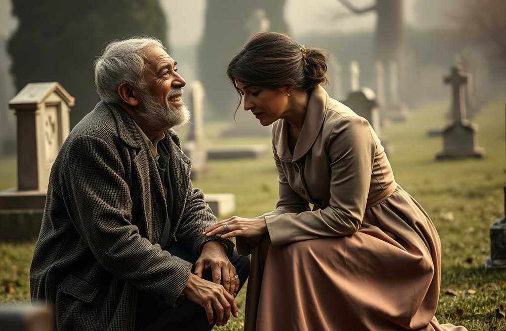 At the graveside, a wealthy woman heard a homeless man ask, “Did you know my mum too?” She collapsed in a faint.