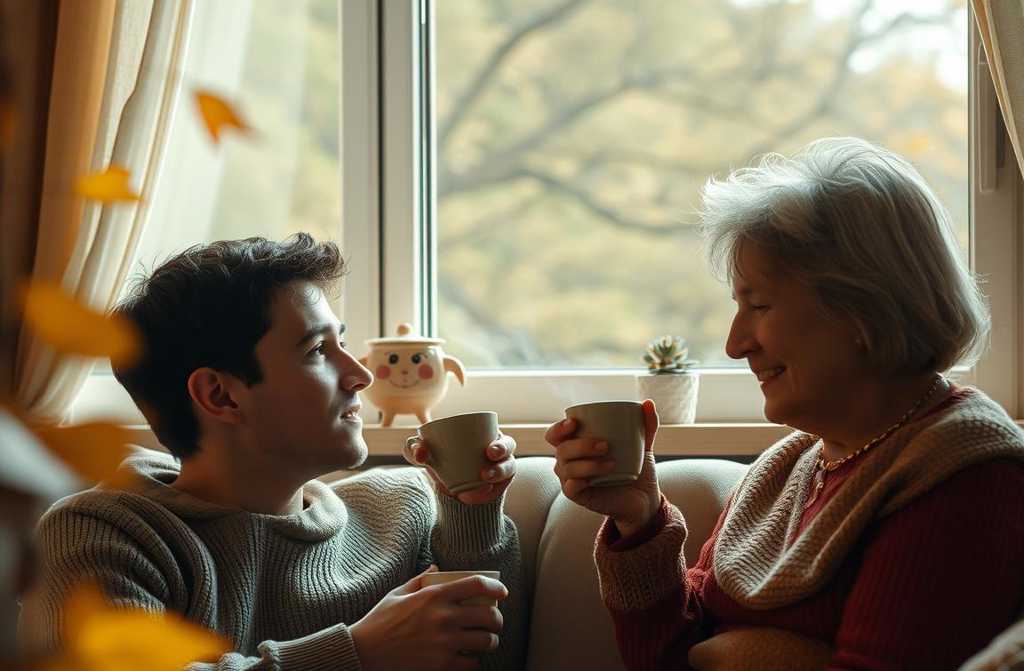 Margaret entered the room carrying a tray with two teacups and a plate of digestives. Her son didnt even glance up. She set his cup on the side table and took her seat opposite him, studying his face.