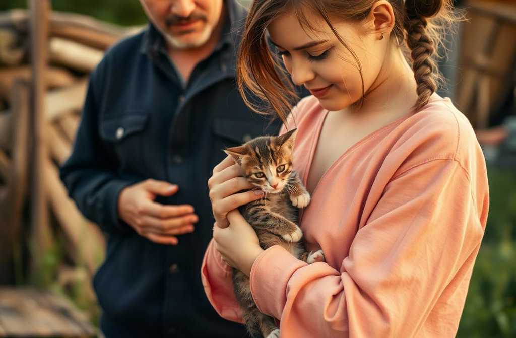 Her disbelief melted into joy. “Dad! Whered you find him? Hes so tinyhe must be starving!”