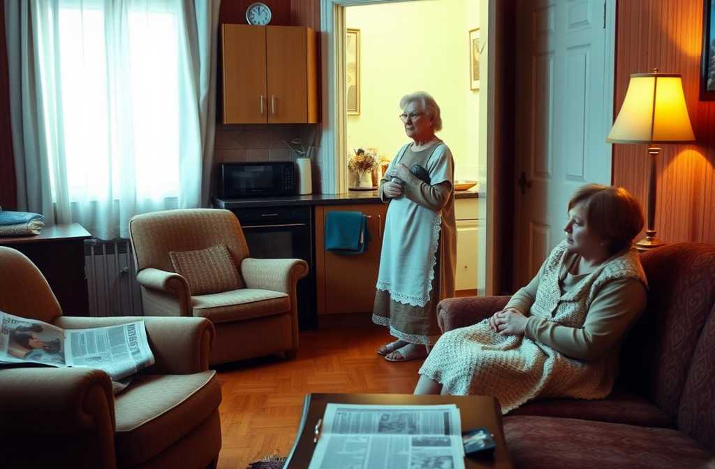 Mrs. Thompson nodded gratefully and was about to leave when a gruff voice called from the living room: