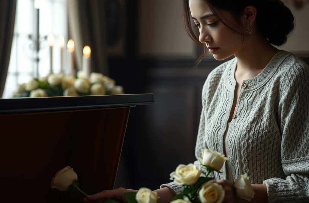 Eleanor flinched as if struck. The white lilies trembled in her hands while mourners shuffled past the casket, murmuring prayers and crossing themselves. Alice’s glare burned with undisguised contempt across the flower-laden bier.