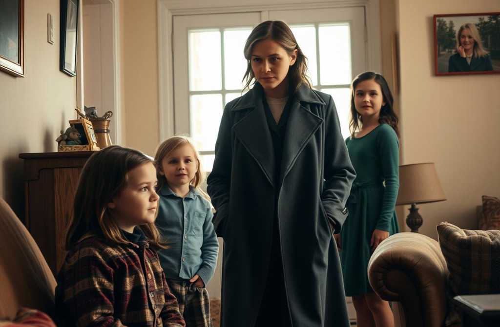 Back in the living room, she walked in on a hushed discussion. James was whispering to the children. They fell silent when she entered.