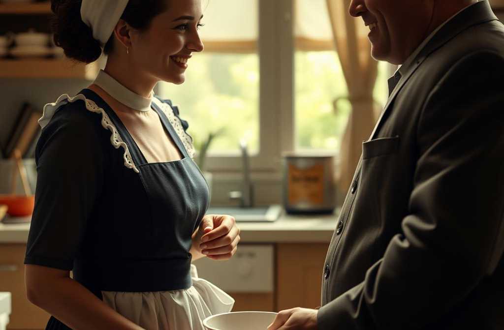 Emily, a young maid in the Harrington household, had just finished sweeping the stone steps at the grand entrance. The housemore accurately, the sprawling estatewas her place of work, bound by strict rules. She moved through it like a ghost: silent, unnoticed, always in the background. Her hands were raw from the cold, her apron smudged with dust, but her heart remained stubbornly kind.