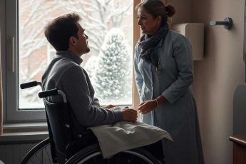 Oliver sat in his wheelchair, gazing through the grimy hospital window at the courtyard below.
