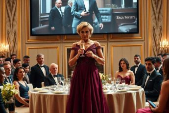 The grand hall of an upscale London restaurant was bathed in the soft glow of chandeliers, the air thick