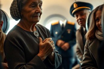 The executive class cabin hummed with tension. Passengers shot disdainful glances at an elderly woman