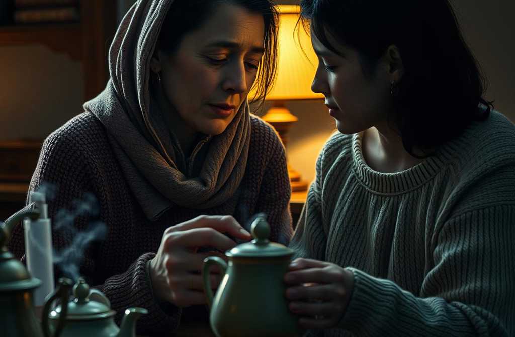 “Shh. Come in.” She guided her to the kitchen, pouring tea. Claires hands trembled around the mug.