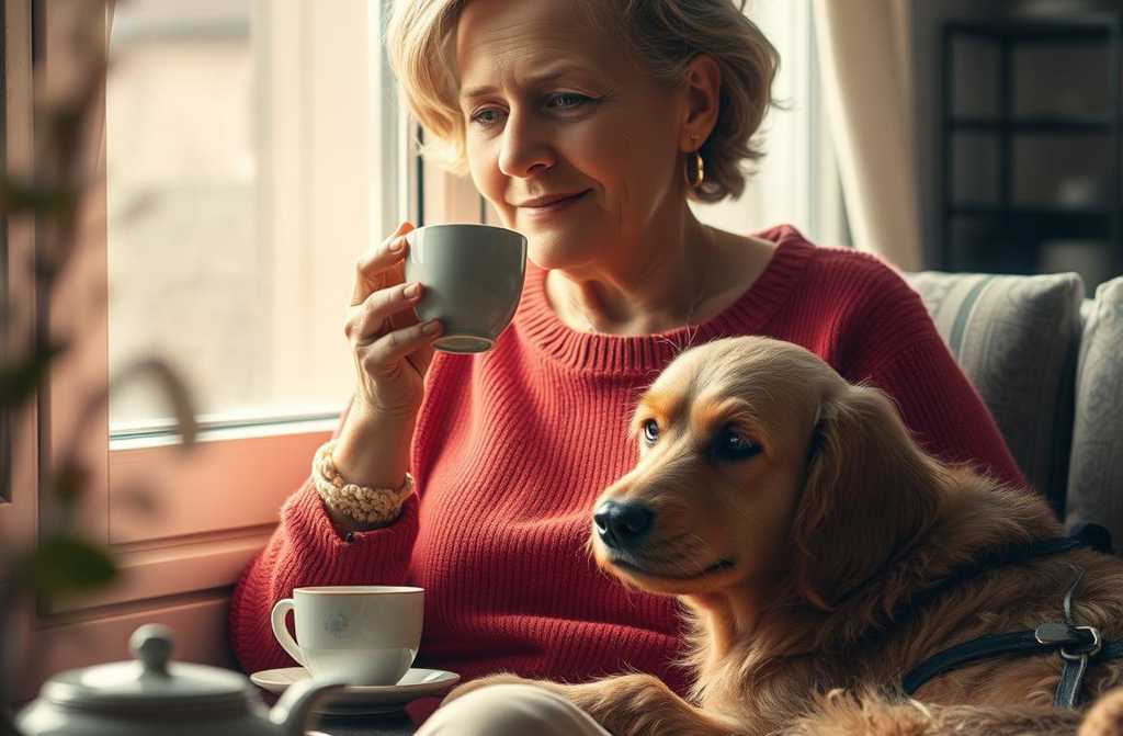 Prada (the corgi) clambered onto her lap, nuzzling for pets.