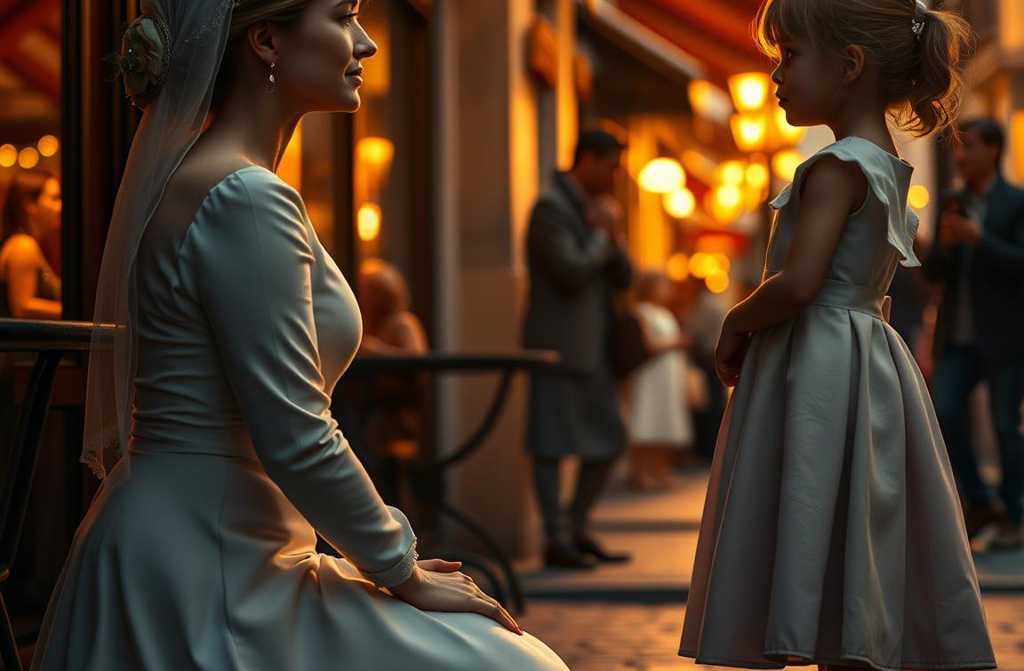 The bride, in a crisp white dress that rustled with every step, froze at the entrance to the restaurant. Inside, guests buzzed, music played, and a three-tiered cake waited beside the groomJames. But the childs words hung in the air like a clap of thunder.