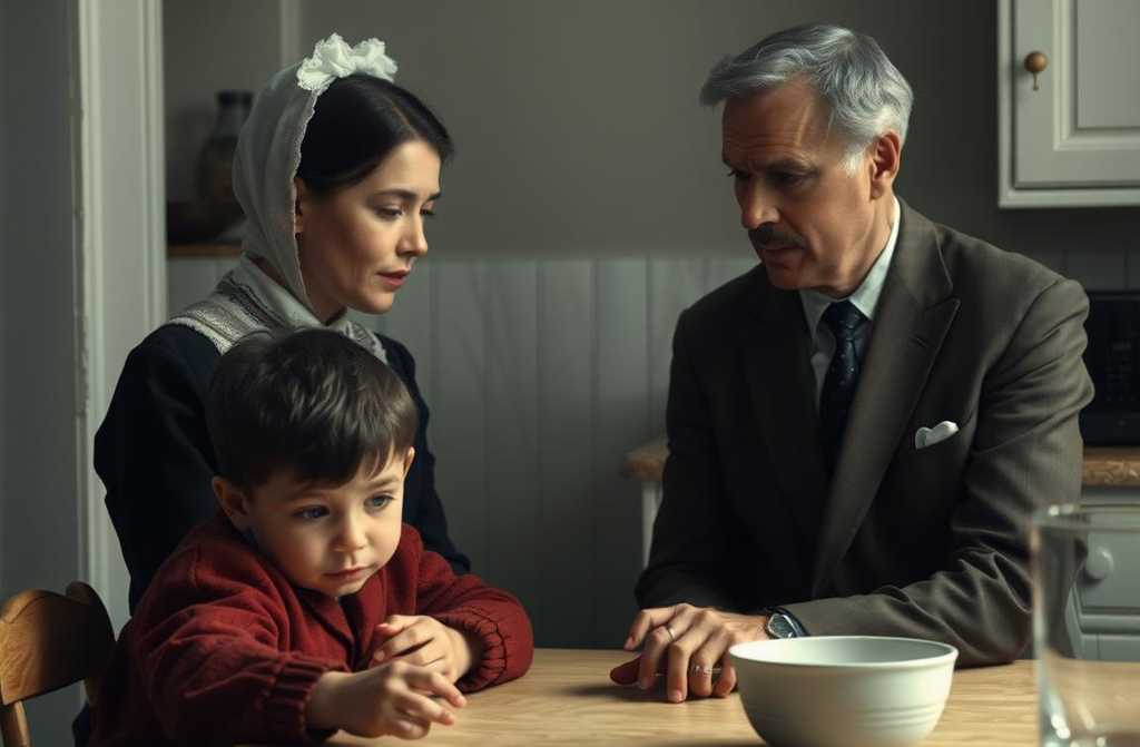 He shed his overcoat, loosened his cravat, and followed the sound of cutlery against porcelain. Then he sawa shoeless boy at his table. And beside him, Emily, pale as milk, her fingers clutching the locket at her throat.