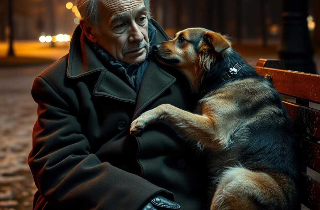 His breath grew shallow, his thoughts hazy. “Is this how it ends?” he wondered. Thensomething warm nudged his cheek. Startled, he opened his eyes to find an old stray dog, one hed often fed near his home, gazing up at him with gentle concern. She licked his gnarled hand, whining softly.