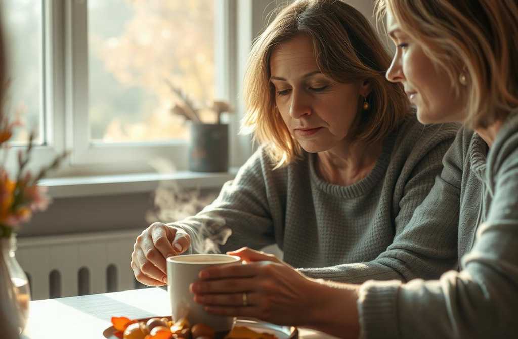 “Emily, would you like some coffee?” asked Charlotte, flicking on the kettle and pulling two mugs from the cupboard.
