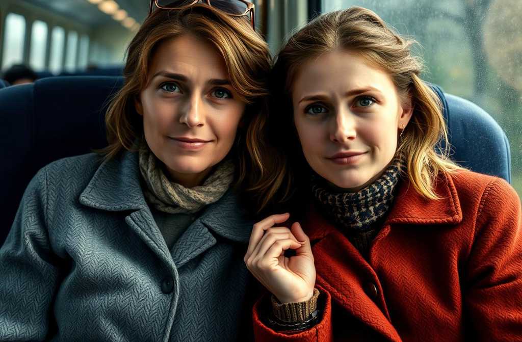 The carriage door creaked open. A woman in a long, dark coat stood in the aisle, cradling two neatly wrapped bundles. Tiny faces peeked out from withintwins.