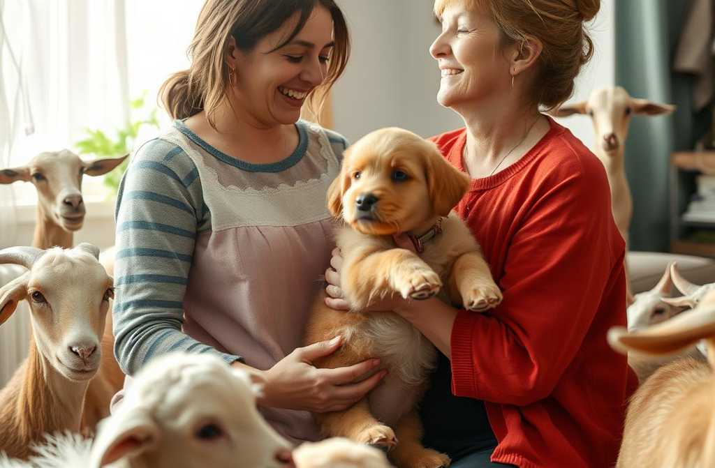 Turns out, she and Tom had signed up to foster rescue animalsjust for a fortnight, she said. But a fortnight had turned into a dozen critters: two goats, four kittens, three puppies, and a pair of cheeky rabbits with a taste for designer curtains.