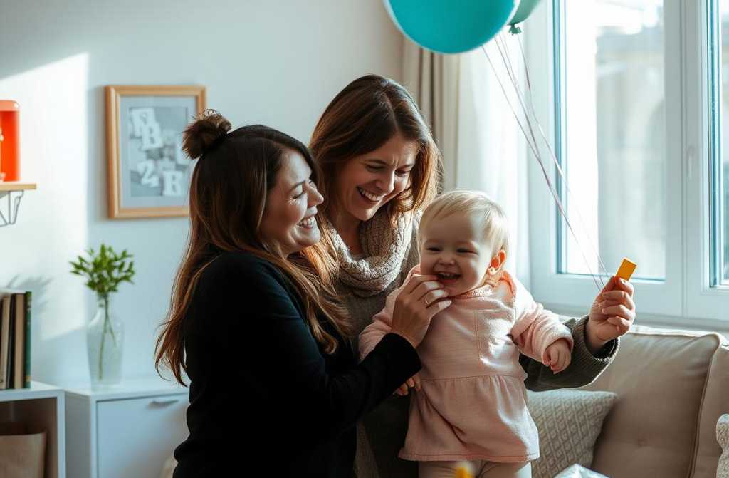 On Emilys first birthday, we hung balloons, baked a Victoria sponge. Margaret cheered as Emily took wobbly steps.