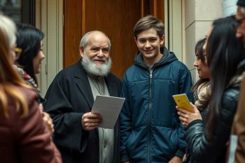 The mother scoffed, then glanced at James. Their eyes metjust for a secondbefore she bent to her son. “Go on, then. But *quietly*.”