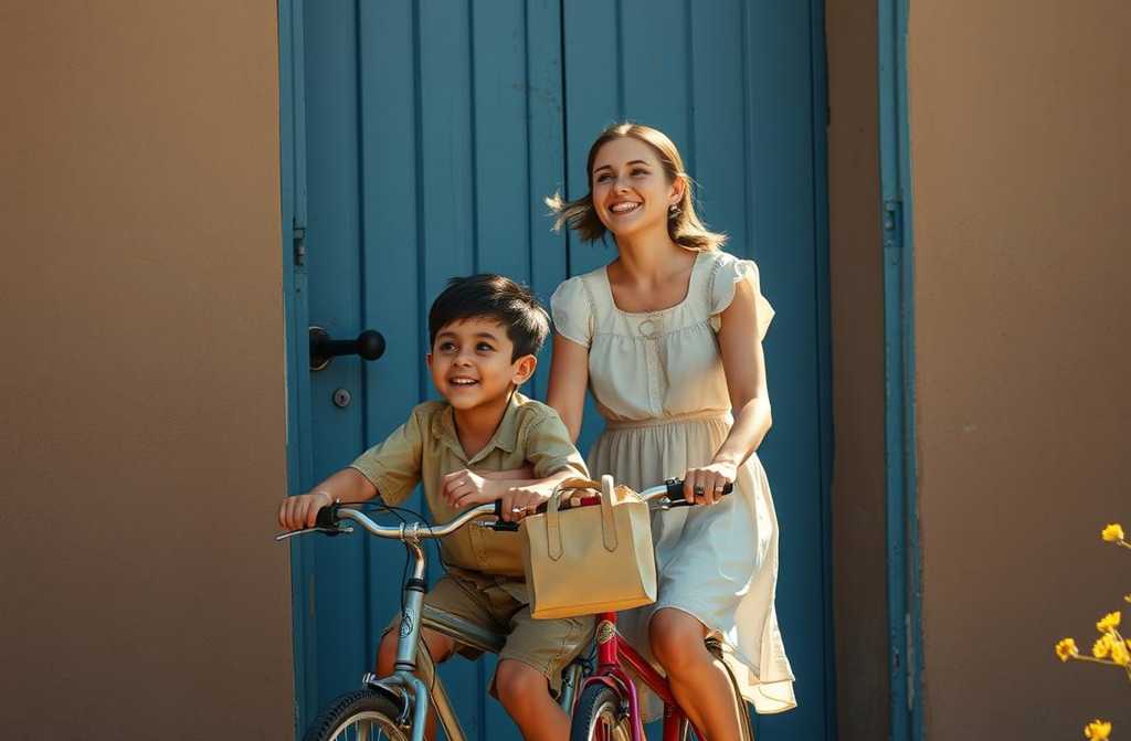 “Nah, was making sandwiches,” she says calmly, tucking the bag into the bikes carrier before hopping onto the crossbar. The boy kicks off, swerving sharply.