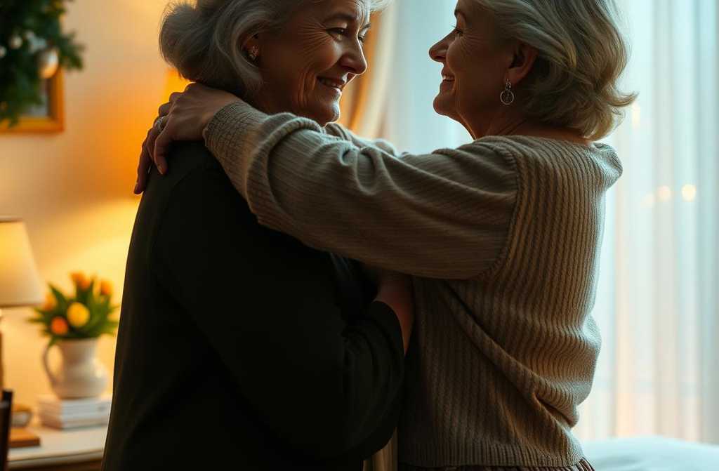 Emily moved to the bed, wrapping her arms around Laura. She felt the frail woman shake with silent sobsand her own eyes filled with tears, for the past, the lost years, the looming loss.