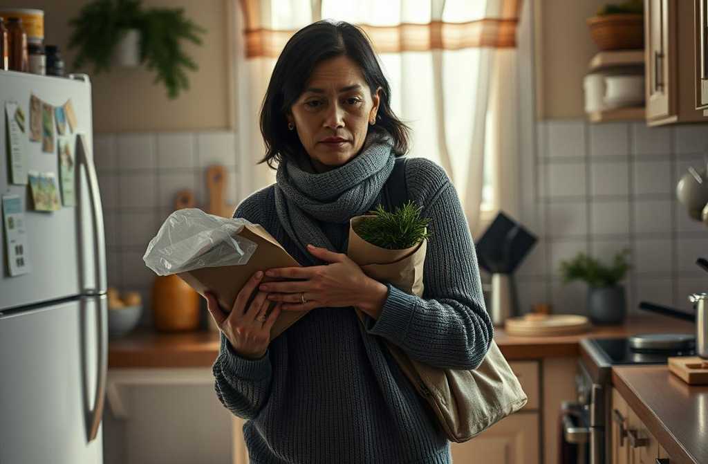 The bags were heavy. She barely made it to the lift, fumbling for her keys at the door. Finally, it swung open.