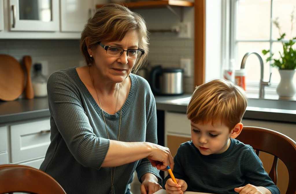 “Mum, look what I drew!” He shoved a crumpled sheet at her. “Its our family!”