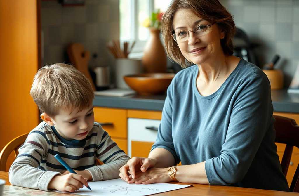 “Mum, look what I drew!” He thrust a crumpled sheet at her. “Its our family!”