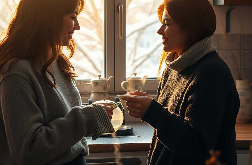 We move to the kitchen together. I fill the kettle; she sets out the mugs, the sugar bowl between us like its always been there. While the water boils, she wipes the tablestill smelling of last nights rainand I pick the tea bags. I glance at her: *Green or black?* A faint smile. *Green today.* I steep them both the same. No argument.