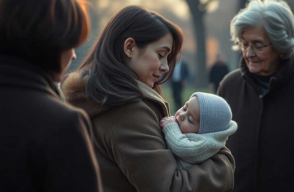 Evelyn brushed off the greeting as if swatting away an annoying fly. Her cheeks were flushed with indignation and cold. She stepped closer, lips pressed, eyes fixed on the infant.