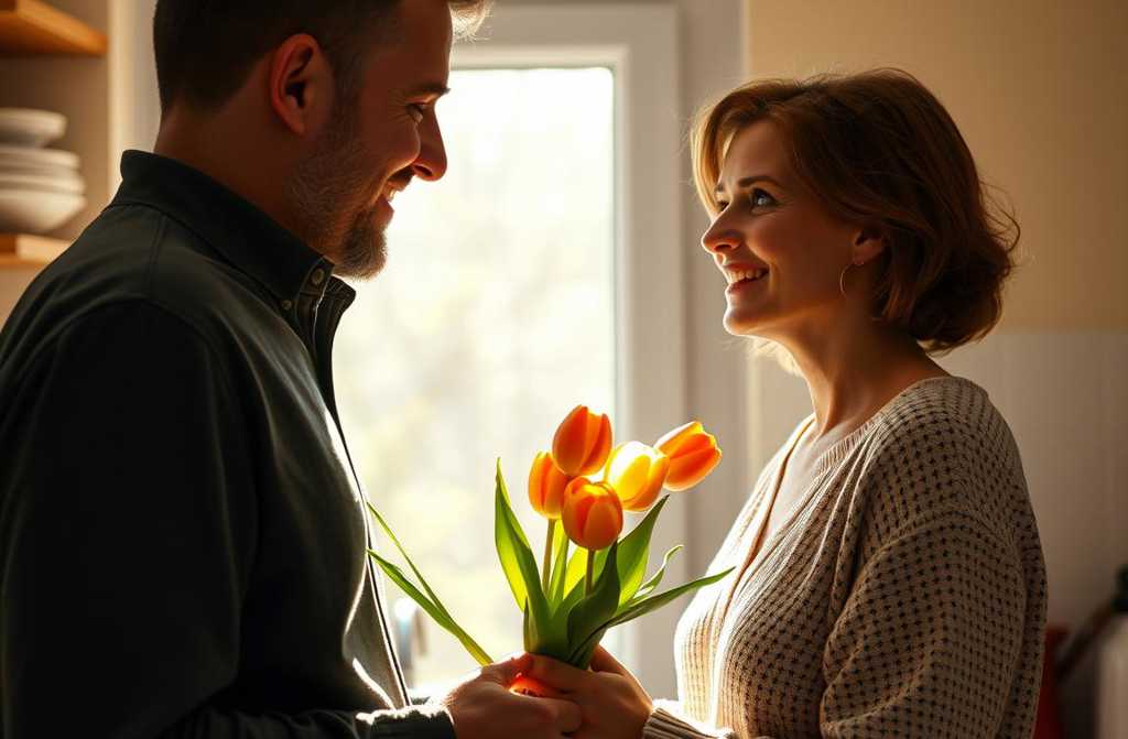 All in the van. And this is for you. Alex pulled out a modest bunch of tulips.