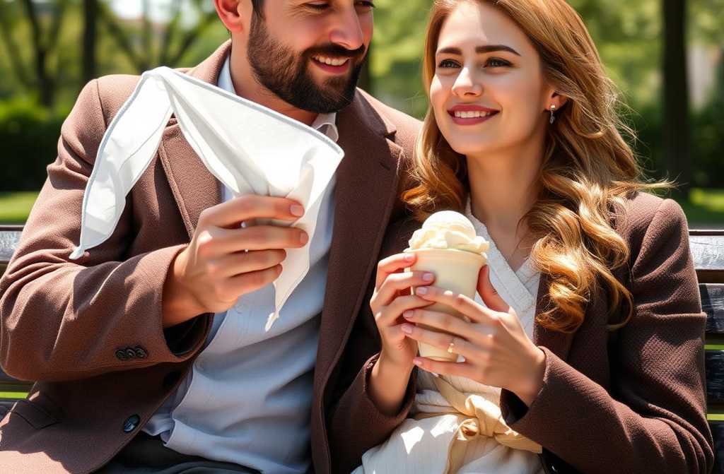 He buys a doublescoop, sits on the same bench, and eats thoughtfully.