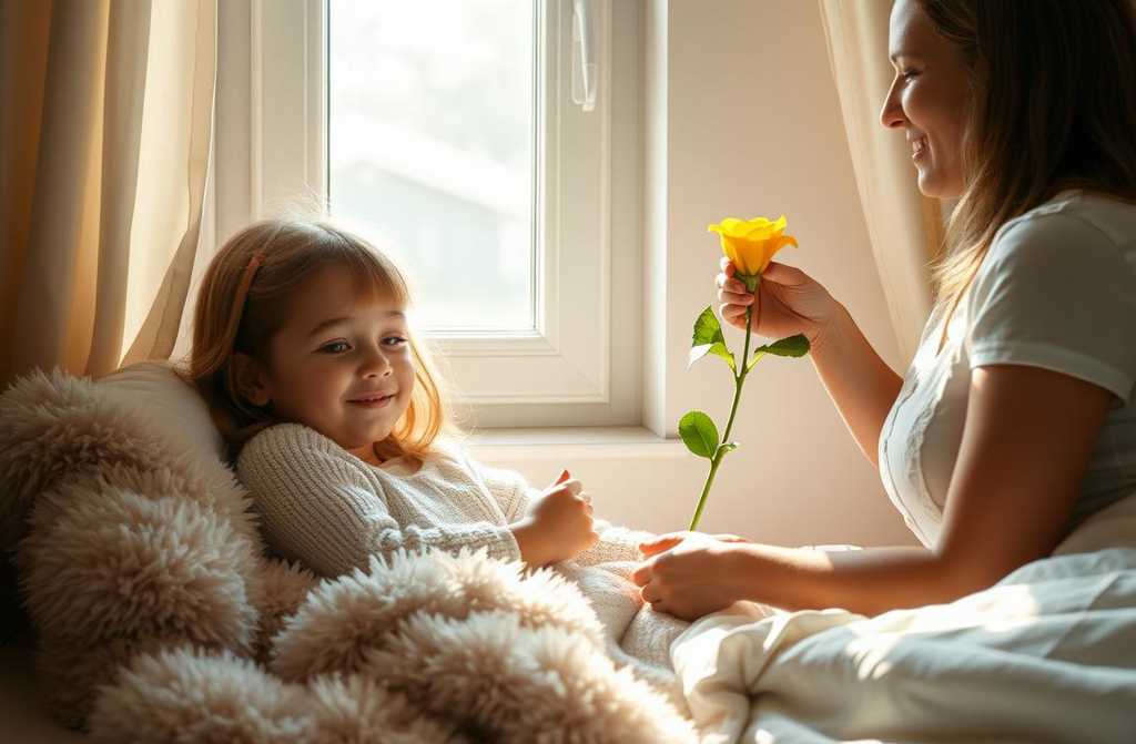 Daisy appeared carrying a potted plant with long, narrow leaves and set it on the windowsill.