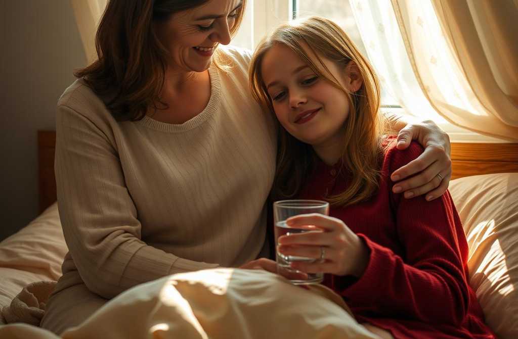 The next morning Claire enters Emilys room. Shes awake, eyes wide. How are you feeling? Head hurting? Claire draws back the curtains and hands her a glass of water. Emily sits up, drinks greedily.