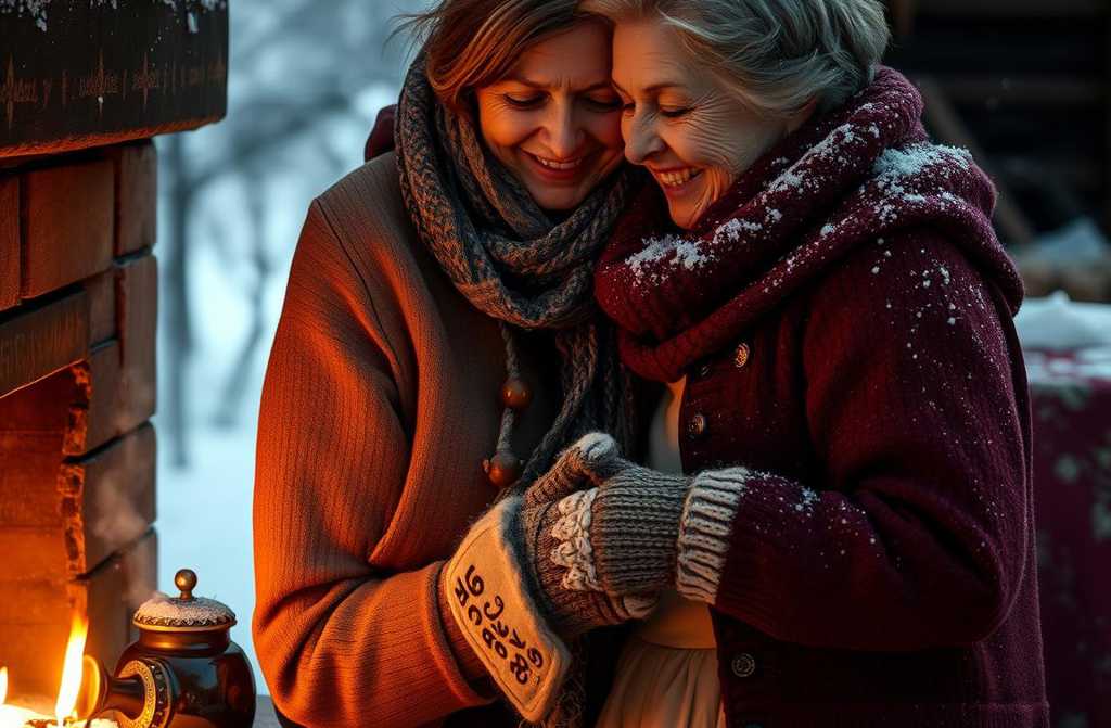 The train wound through a modest town after a frozen river. The air was sharp, scented of Christmas. Snow glittered beneath the sun, crackling beneath our boots. Pine tops whispered and rustled. I began to shiver, but, to my relief, a hamlet appeared.