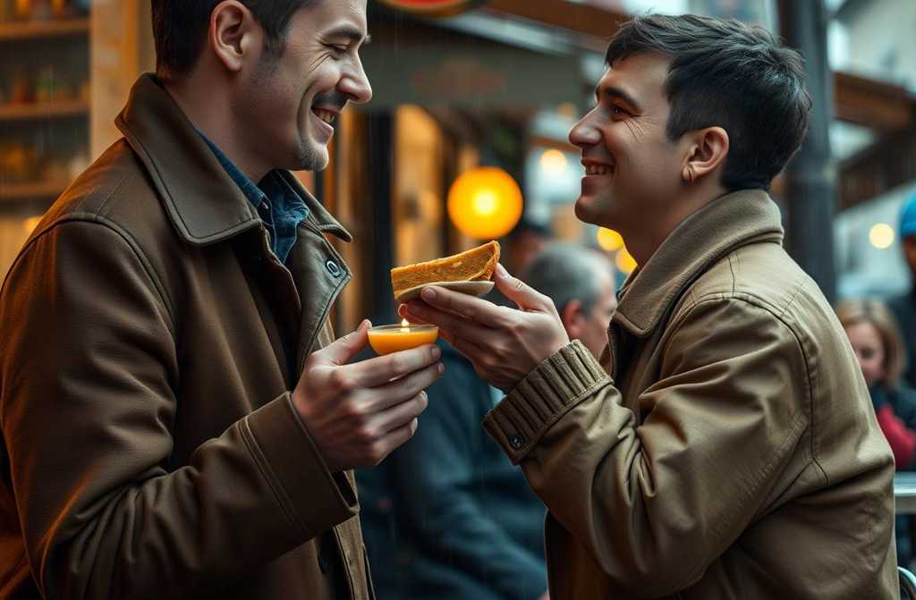 A lateevening in a corner café on a rainslicked street of Bristol. The walls are brushed in warm ochre, raindrops trail lazily down the pane. Three coats hang on hooks by the door: a light one, a grey one and a third with a stripe on the lining. Inside it is dry and cosy, the air scented with fresh scones and tea. The waitress glides between tables almost unheard. At the window table sit three men: Ian, Sam and Andy.
