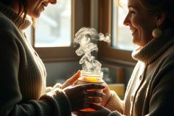 We tuck in, exchanging glances, while she murmurs soft, rounded words, her gaze sharp and watchful. It feels as if shes dissecting my soul. She darts about, cutting bread, tossing kindling onto the fire, and declares, Ill put the kettle on. Lets have tea. The little kettle has a lid shaped like a pine cone, a cone with a tiny hole from which steam rises. The tea is not ordinary its berryinfused, with a spoonful of raspberry jam that will chase any chill away. No sickness will find you here. Help yourselves, dear guests, eat what you like.